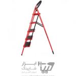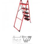 نردبان ۵ پله با ظاهر زیبا و رنگ قرمزی که با روش الکترواستاتیک کورهای رنگ شده که مقاومت آن در مقابل دما و رطوبت را بالا میبرد.
