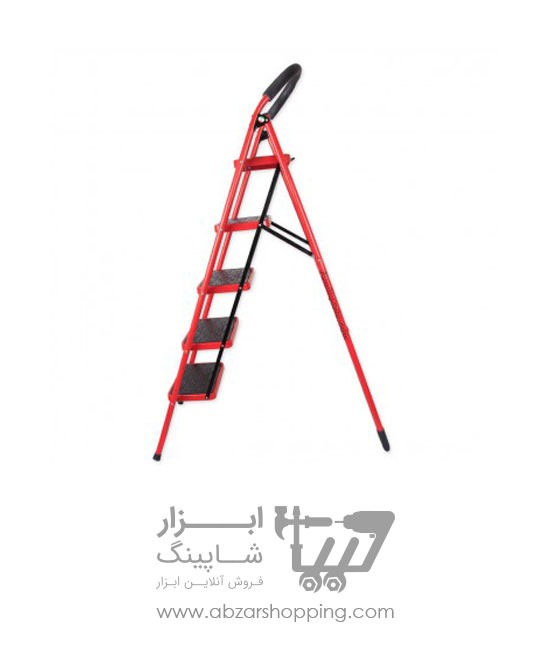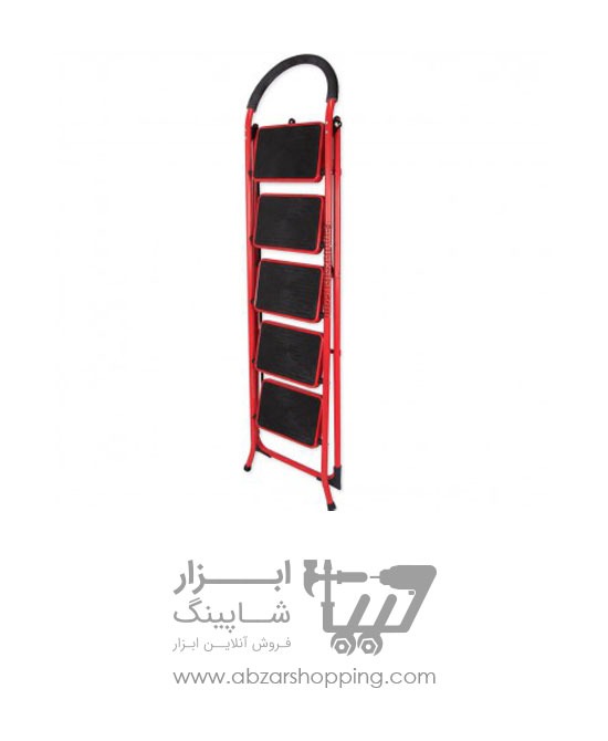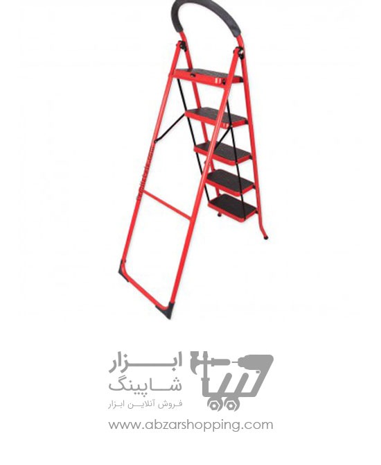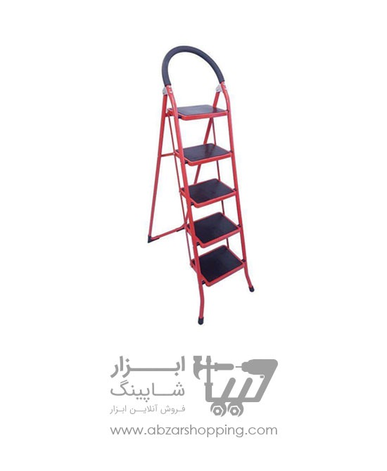 نردبان ۵ پله با ظاهر زیبا و رنگ قرمزی که با روش الکترواستاتیک کورهای رنگ شده که مقاومت آن در مقابل دما و رطوبت را بالا میبرد.